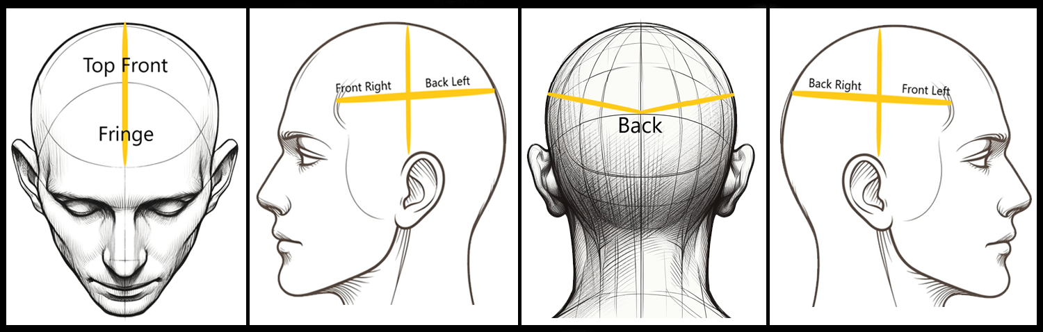 The worst-affected areas of my scalp were the Fringe, Top Front, Front Right, Back Left, Back, Back Right and Front Left, as illustrated below.